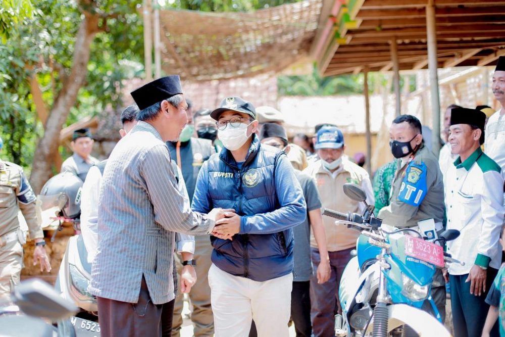 PAMEKASAN, Lebur.id – Bupati Pamekasan, Jawa Timur, Baddrut Tamam meninjau langsung progres pengerjaan program Rumah Tidak Layak Huni (RTLH) di tiga Kecamatan di Pamekasan dengan mengendarai motor, Rabu (06/10/21).