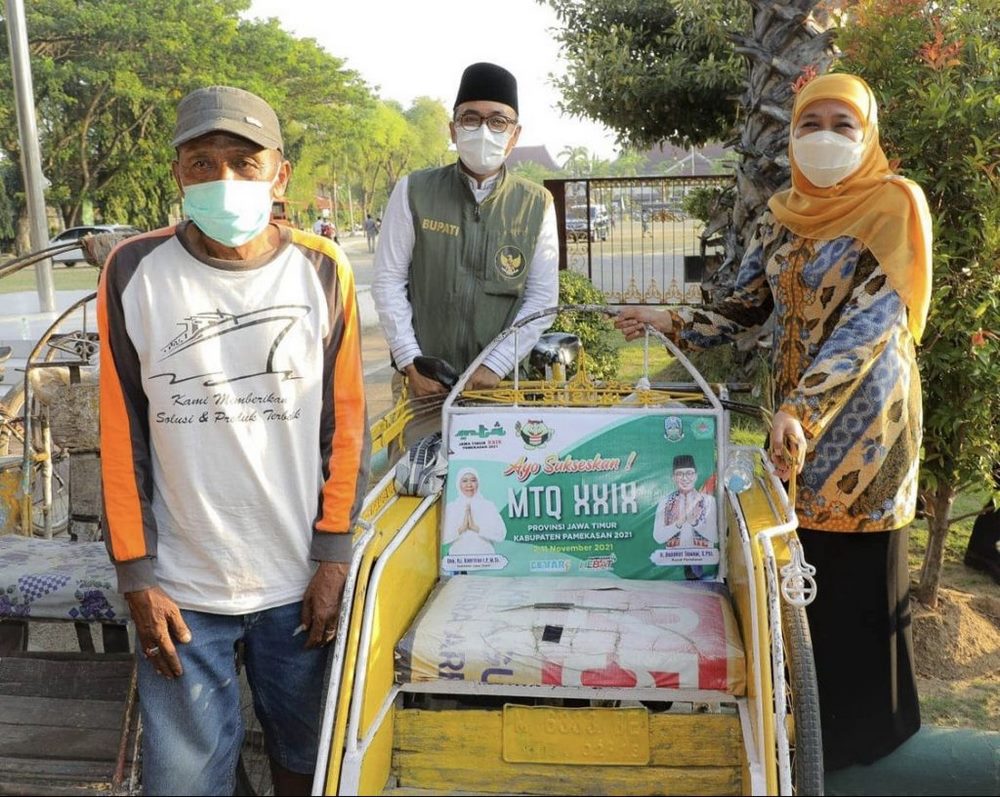 Becak dan ojek yang tergabung dalam perkumpulan ojek dan becak (pobek) tersebut sebanyak 100 becak dan lima ojek. Mereka mendapatkan paket bantuan berupa 5 kilo gram beras dan sejumlah uang. Selain memberi bantuan, pemkab membranding sandaran becak dengan cara ditempel banner MTQ XXIX.