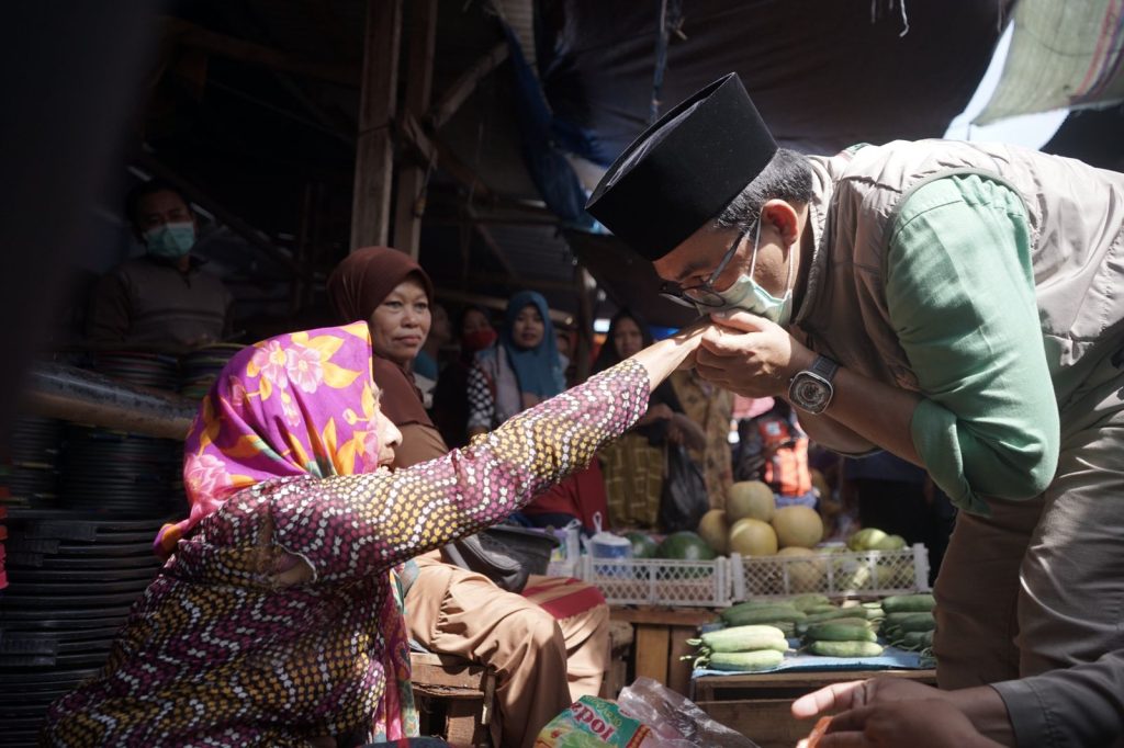 “Semoga sampean diberikan kesehatan oleh Allah, dan rezekinya banyak. Amin,” kata bupati kepada pedagang tersebut.