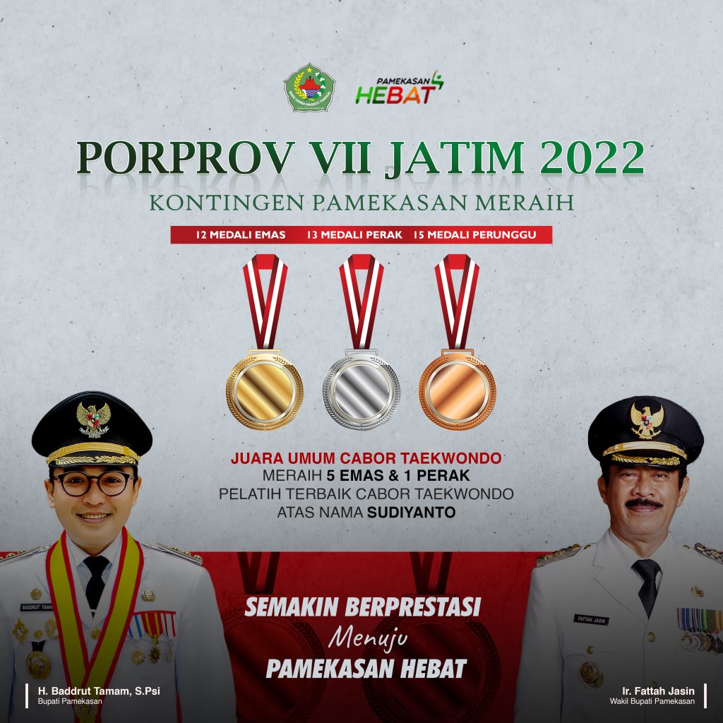 Adapun rincian perolehan medali yang berhasil diraup pada semua Cabang Olahraga (Cabor) yakni sebanyak 12 medali emas, 13 medali perak, dan 15 medali perunggu, dengan nilai total 89. Dan yang membanggakan lagi, Pamekasan berhasil meraih juara umum pada Cabor Taekwondo dengan raihan 5 medali emas dan 1 perak. (lum)