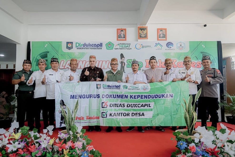 PAMEKASAN, Lebur.ID- Bupati Pamekasan, Jawa Timur, Baddrut Tamam launching Sistem Pelayanan Administrasi Kependudukan di Kantor Desa (Sip Pak Kades) di Desa Rek Kerrek, Kecamatan Palengaan, Rabu (27/7/2022). Program ini merupakan salah satu inovasi Dinas Kependudukan dan Catatan Sipil (Disdukcapil) Pamekasan. Launching ini dibarengi kegiatan Gerakan Peduli Disabilitas dan Pemberian Santunan.