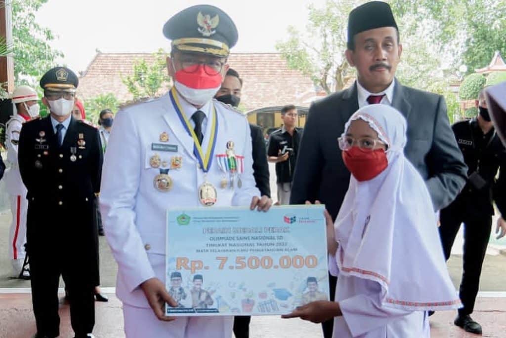 PAMEKASAN, Lebur.id – Bupati Pamekasan, Jawa Timur, Baddrut Tamam memberikan penghargaan serta uang pembinaan kepada dua siswa tingkat Sekolah Dasar (SD) yang berhasil mengharumkan nama Pamekasan di event Olimpiade Sains Nasional (OSN).
