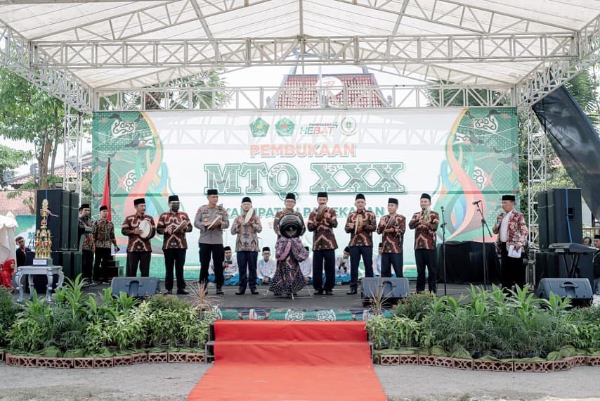 PAMEKASAN, Lebur.ID- Bupati Pamekasan, Madura, Jawa Timur Baddrut Tamam secara resmi membuka musabaqoh tilawatil qur’an (MTQ) ke XXX tingkat Kabupaten, Minggu (11/9/2022). Event dua tahunan tersebut akan berlangsung dari 11-13 September 2022. Pembukaan ditandai dengan penabuhan genderang dan rebana di Lapangan Nagara Bhakti Mandhapa Aghung Ronggosukowati oleh bupati disaksikan Wakil Bupati Fattah Jasin, anggota forkopimda, undangan dan peserta MTQ.