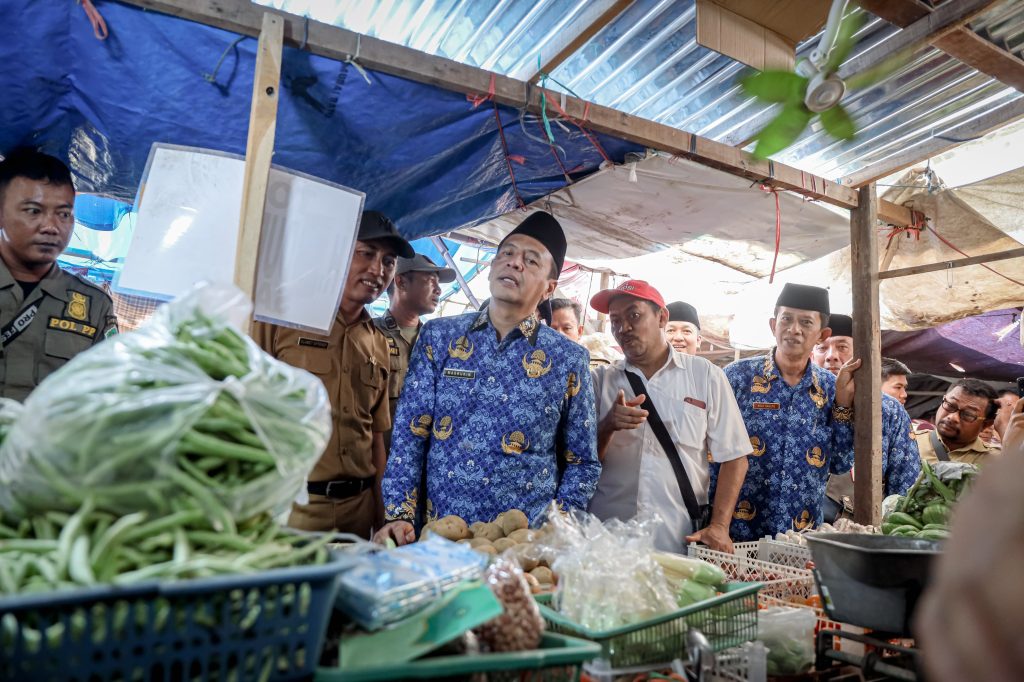 Setelah itu, Masrukin bersama jajaran pejabat yang mendampingi memasuki areal Pasar Kolpajung untuk memantau langsung harga dan stok sembako di masing-masing lapak pedagang.