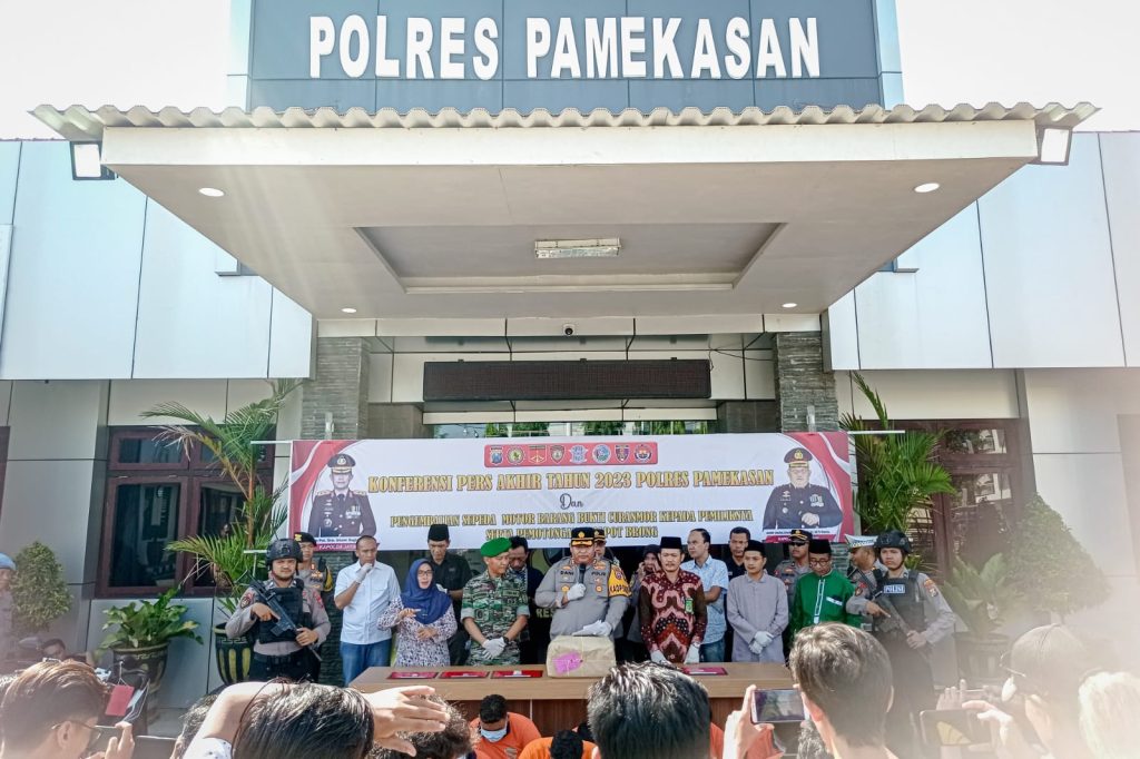 “Kami mengimbau kepada masyarakat semuanya agar dalam berkendara benar-benar harus hati-hati,” ujar Kapolres Pamekasan, AKBP Jazuli Dani Irawan, saat Konferensi Pers akhir tahun di halaman Mapolres Pamekasan, Jum’at (29/12/2023).