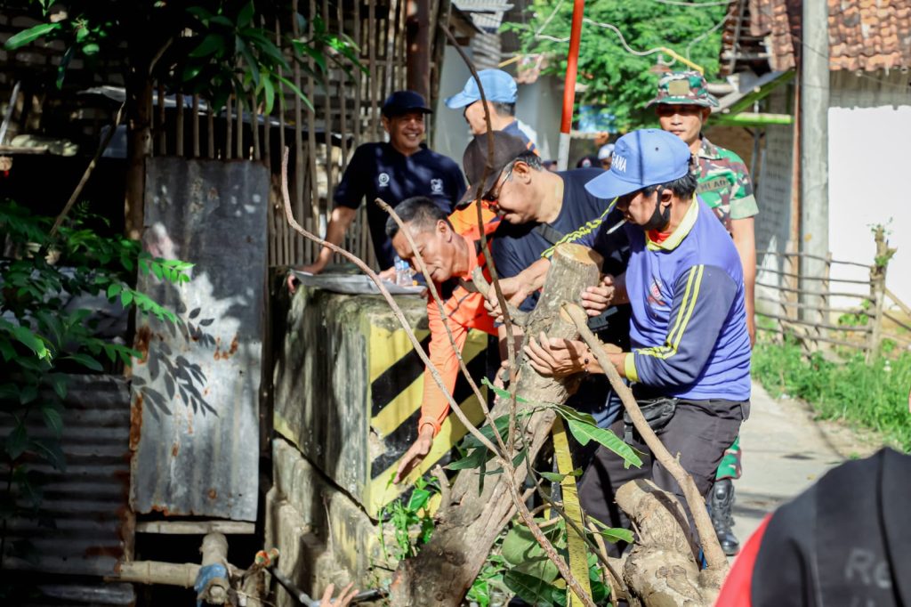 Pj Bupati Pamekasan, Masrukin bersama para pejabat lainnya tidak sungkan untuk turun langsung membersihkan sampah dan patahan-patahan kayu yang mengotori sepanjang aliran sungai.