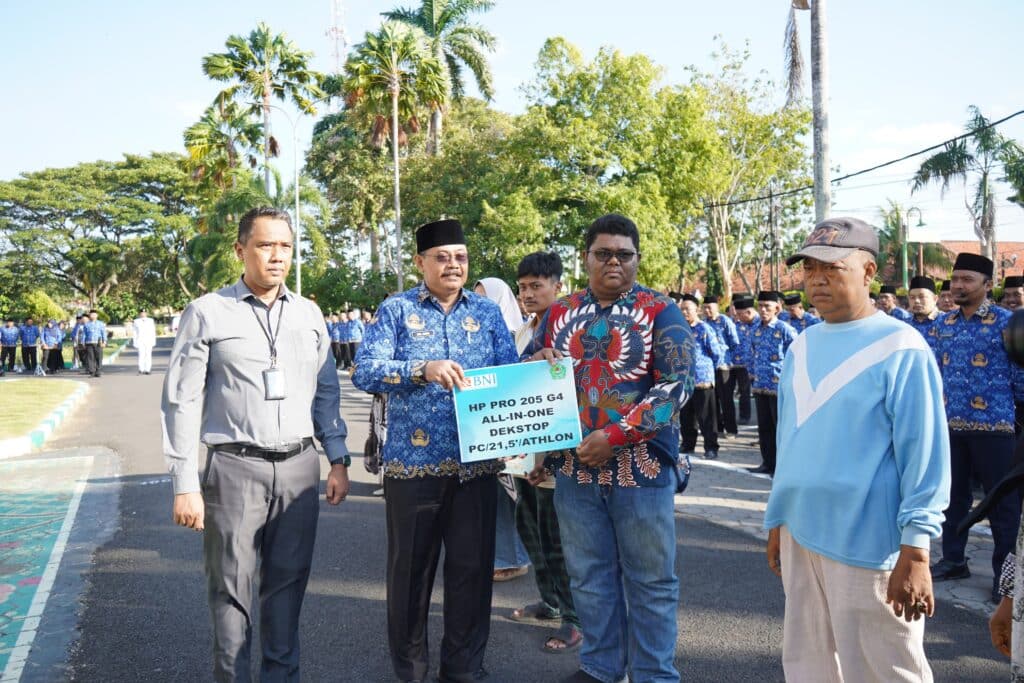 Pantauan di lokasi, sebelum upacara dimulai, Pj Sekretaris Daerah (Sekda) Pamekasan, Ach Faisol memberikan bantuan 8 alat Usaha Kecil Mikro Menengah (UMKM) kepada 8 pelaku usaha UMKM melalui Corporate Social Responsibility (CSR) dari Bank Negara Indonesia (BNI).