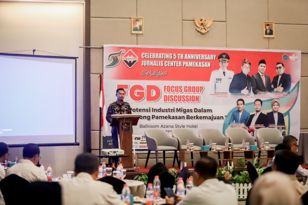 PAMEKASAN, Lebur.id – Jurnalis Center Pamekasan (JCP) merayakan hari jadi ke-5 di Ballroom Azana Style Hotel, Jalan Jokotole Pamekasan, Rabu (14/8/2024). Perayaan tahunan itu diisi dengan Focus Group Discussion (FGD) bertajuk ‘Potensi Industri Migas dalam Menyongsong Pamekasan Berkemajuan’