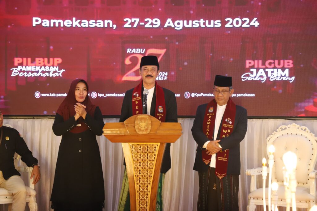 PAMEKASAN, Lebur.id – Pasangan calon bupati (cabup) dan calon wakil bupati (cawabup) Fattah Jasin-Mujahid Ansori resmi mendaftar Pemilihan Kepala Daerah (Pilkada) Pamekasan tahun 2024 di kantor Komisi Pemilihan Umum (KPU) setempat, Jalan Brawijaya Nomor 5 Kelurahan Jungcangcang, Rabu (28/8/2024) siang.
