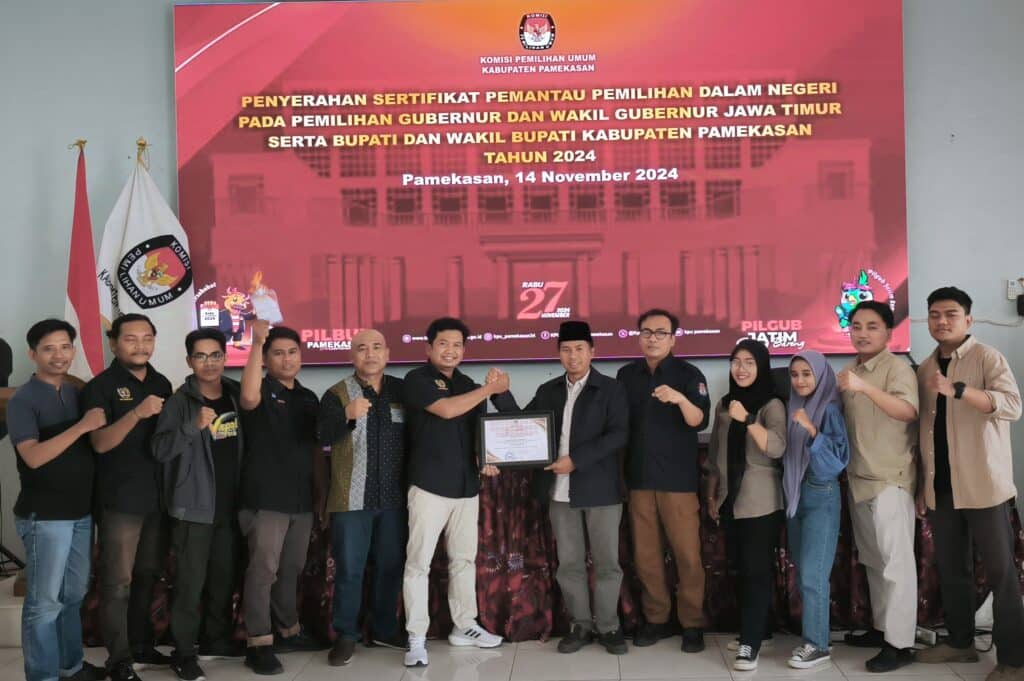 PAMEKASAN, Lebur.id- Masyarakat dan Pers Pemantau Pemilu Persatuan Wartawan Indonesia (Mappilu PWI) Pamekasan resmi terakreditasi sebagai pemantau pemilihan bupati dan wakil bupati Pamekasan tahun 2024. Kepastian itu setelah Ketua Mappilu Pamekasan Imam S. Arizal menerima sertifikat akreditasi dan ID Card Pemantau dari Ketua KPU Pamekasan Mahdi, Kamis (14/11/2024).