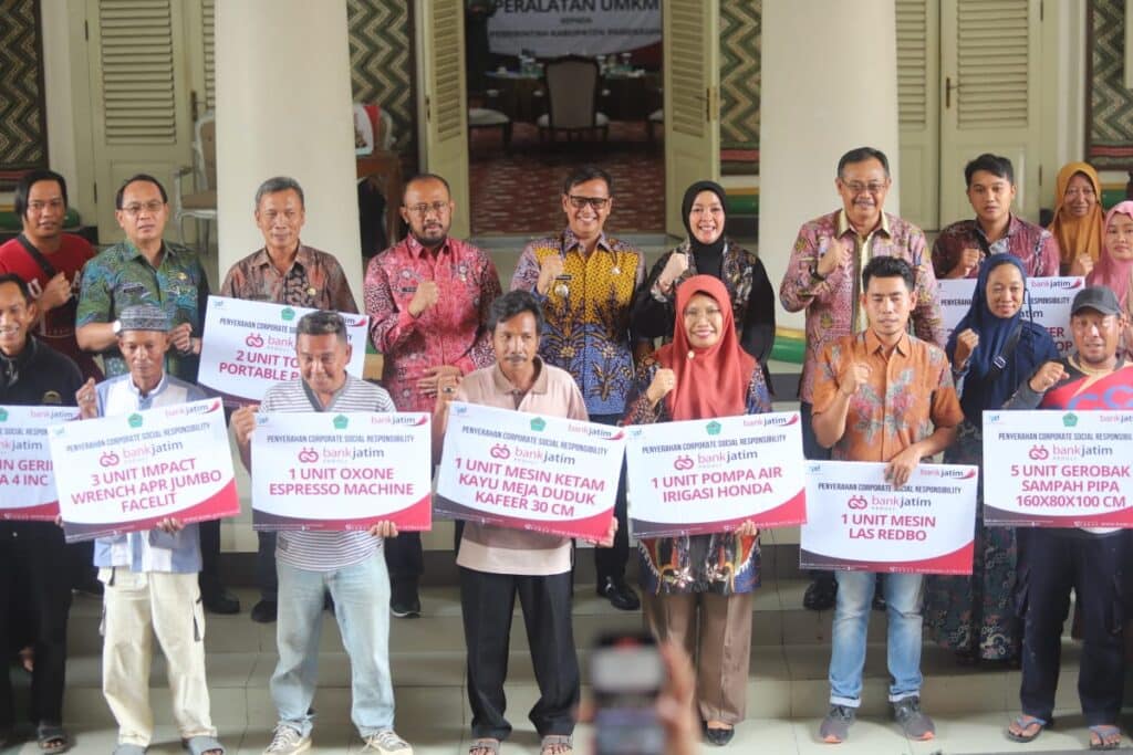 PAMEKASAN, Lebur.id – Pemerintah Kabupaten (Pemkab) Pamekasan, Jawa Timur, bersama Bank Jatim menyerahkan bantuan Coorporate Social Responsibility (CSR) berupa alat usaha untuk para pelaku Usaha Mikro Kecil Menengah (UMKM) di Pringgitan Dalam Mandhapa Aghung Ronggosukowati, Kamis (14/11/2024).